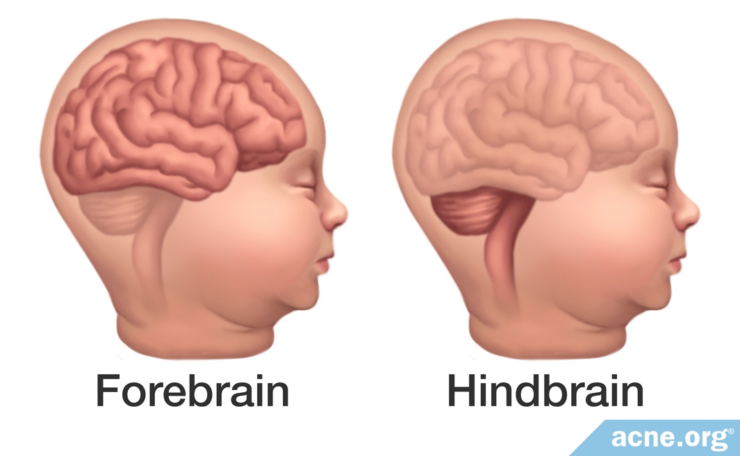 - The first group has developmental defects in the lower part of the brain, called the hindbrain. This section of the brain is crucial for basic physiological functions like heartbeat and breathing. When affected by isotretinoin, defects in this region often result in miscarriage.