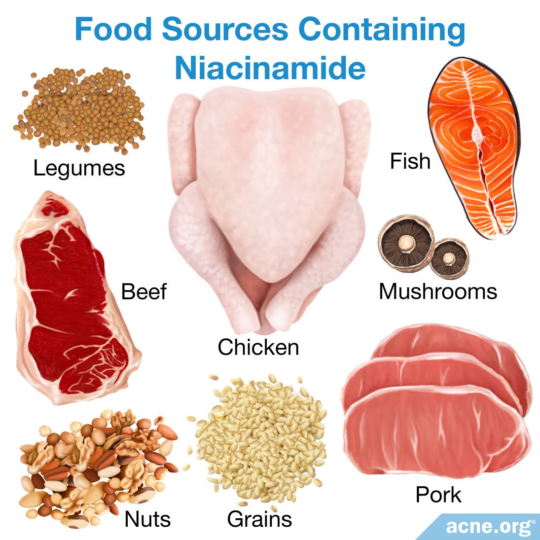 Niacinamide, also called nicotinamide, is vitamin B3. We naturally take in different forms of this vitamin from food sources such as nuts, legumes, grains, mushrooms, chicken, pork, beef, fish, and yeast extracts. Niacinamide is an important part of our diet because it helps the cells of our bodies produce the molecules and energy they need to work properly.