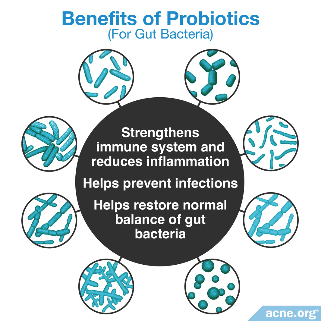 As a side note, taking probiotics at the same time as taking oral antibiotics may also help people tolerate the antibiotic better.6,11-13 This is relevant to acne because oral antibiotics are sometimes prescribed to treat acne.