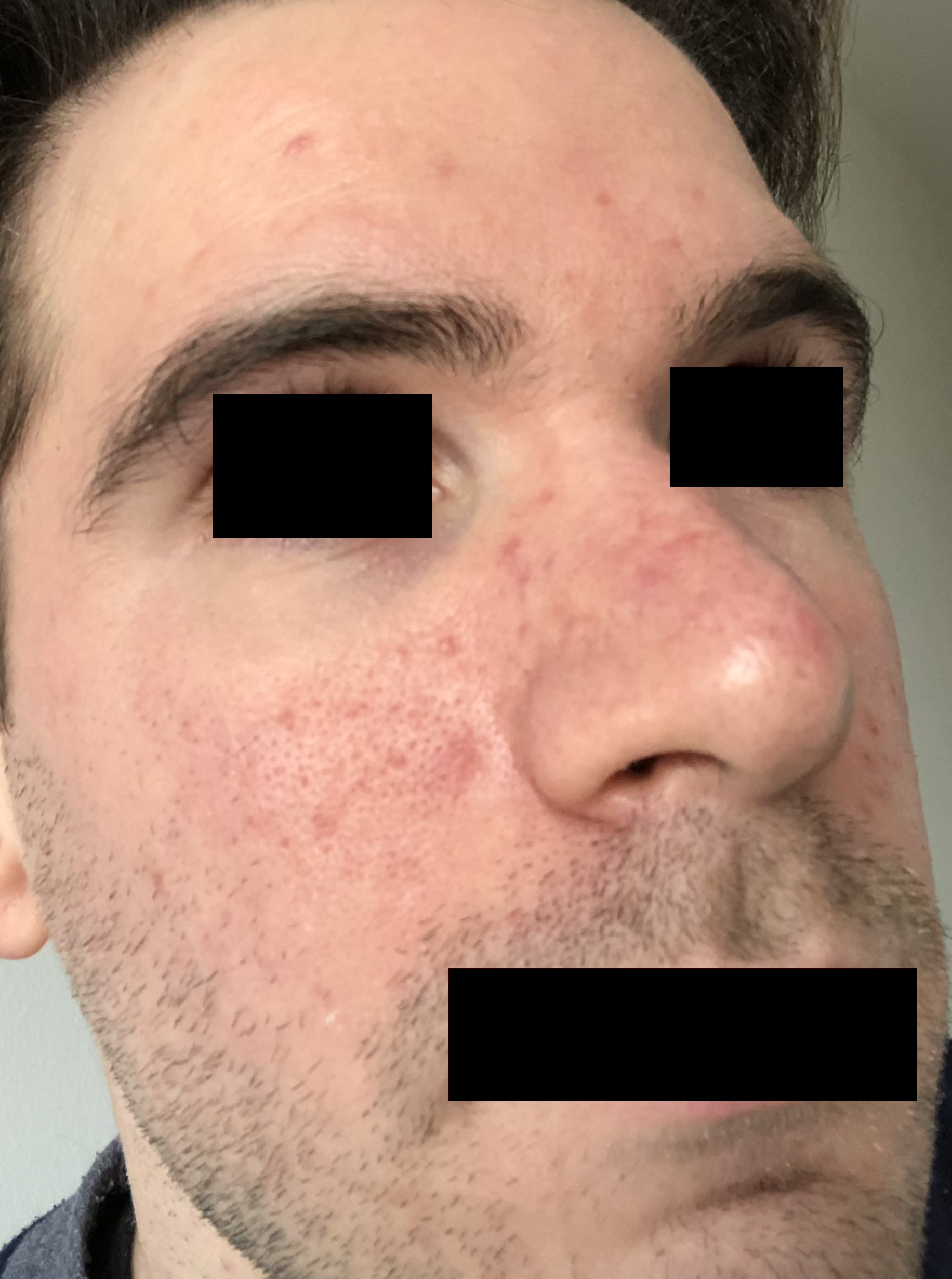 I have no flares, itching or pain. Just redness and a lot of pimples and red marks.