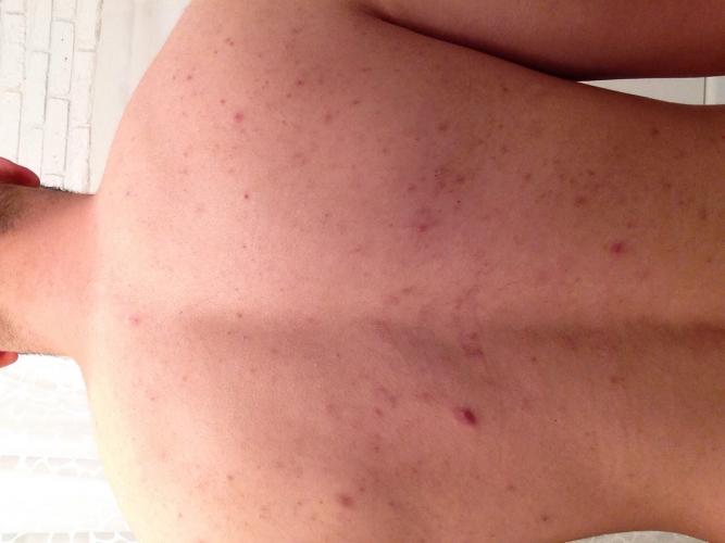 As for your current acne on your back though try some dead sea salt and tea tree oil baths. You can pick them both up quite cheap on amazon. I was having these baths every other day for about 20 minutes and they reduced the inflammation and redness quite largely. However don't expect to see results over night. Persevere ![]()