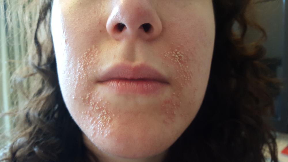 I went to Venice last year and got this horrendous thing on my face, not like anything I've seen before. It's just loads and loads of white heads that feel dry, itchy, irritated and inflamed. It was all around my mouth. It started to clear as soon as I got on the plane and as I left it alone. It was gone after a couple of days and did not leave scarring.