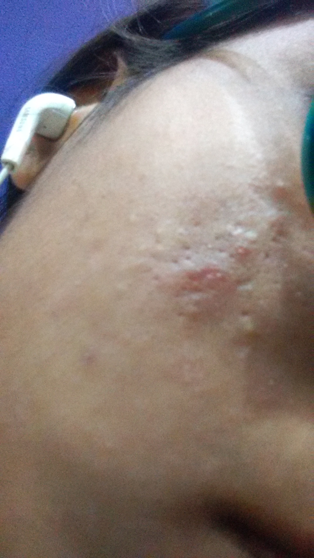 I have been getting a stubborn cluster of bumps or pimples in the same area (my right cheek) for almost two years now. My dermatologist recommended Deriva CMS but it's been two months and I see no improvements. The bumps become red when irritated and I have a few ice pick scars there too. I'm 17. Could anyone tell me what type of acne is this and why it's on;y occurring on one side of my face?