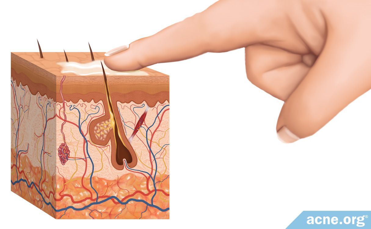 Topical treatments for acne must first pass through the outermost layer of the skin so they can reach the area of the skin where their action is needed.