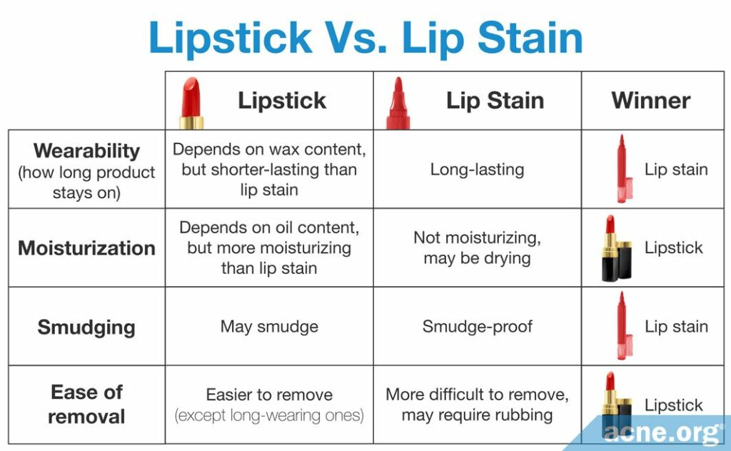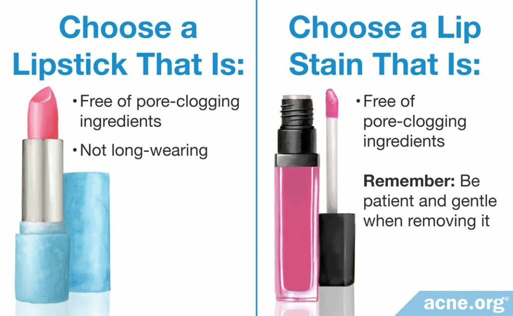 Lipstick and lip stain each have advantages and disadvantages when it comes to acne.