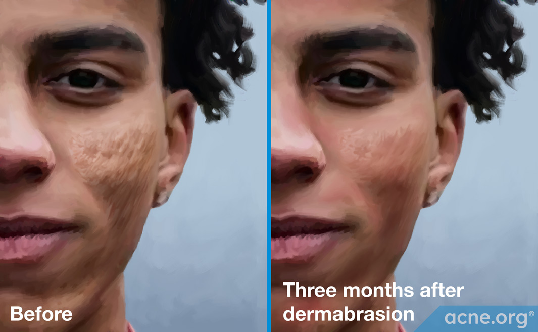 While dermabrasion can potentially eliminate boxcar and rolling scars completely, a more realistic outcome is some improvement in the appearance of atrophic scars. In rare cases, dermabrasion does not result in any improvement.2