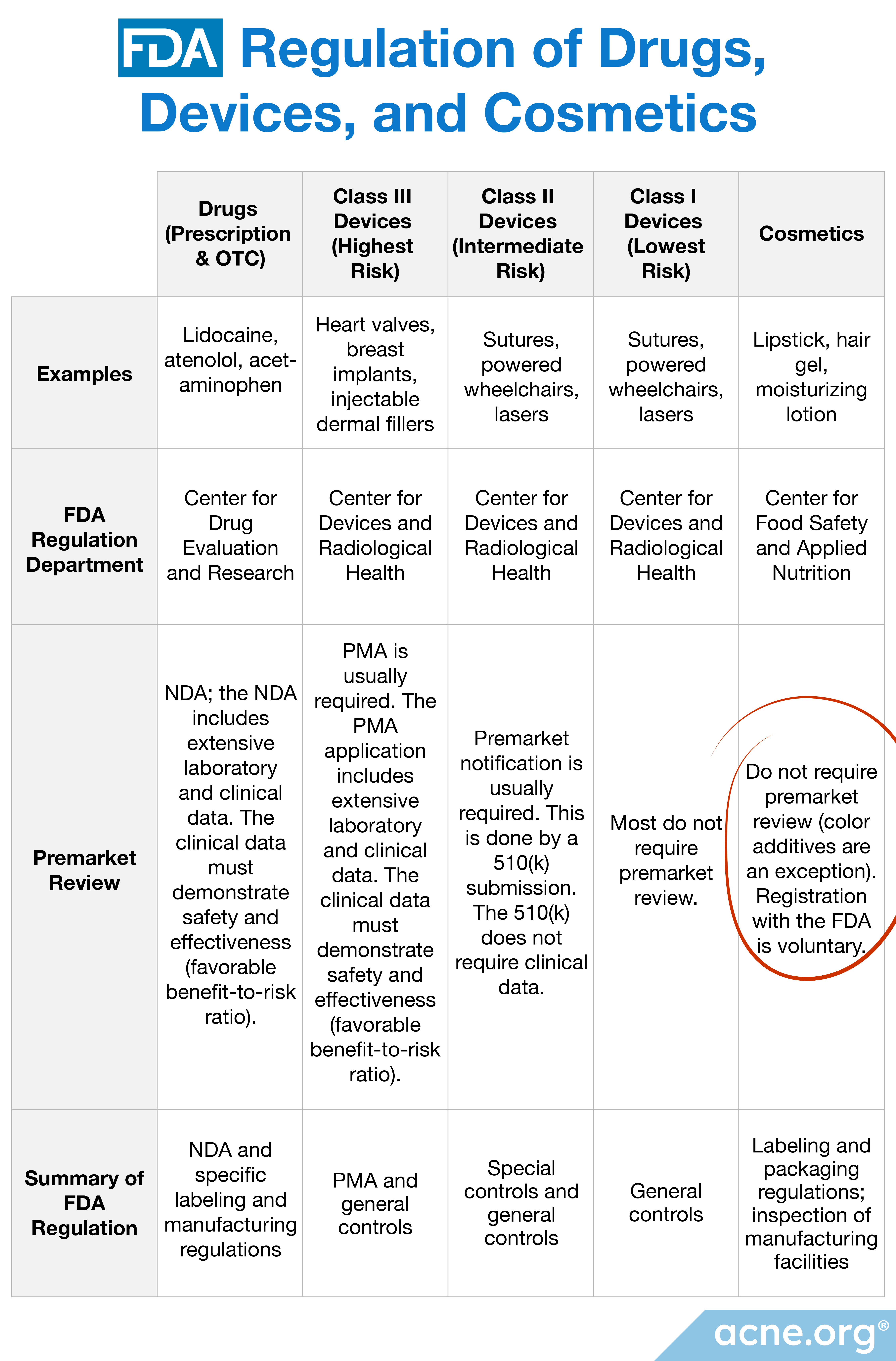 Because the goal of topical scar products is to improve the appearance of scars rather than to resolve the scars, these products can technically be classified as cosmetics rather than drugs. Marketing topical scar treatments as cosmetics allows the manufacturers to bypass the review process that all drugs must undergo before they become available to consumers. In fact, in the United States, manufacturers do not even have to register cosmetic products with the Food and Drug Administration (U.S. FDA).1