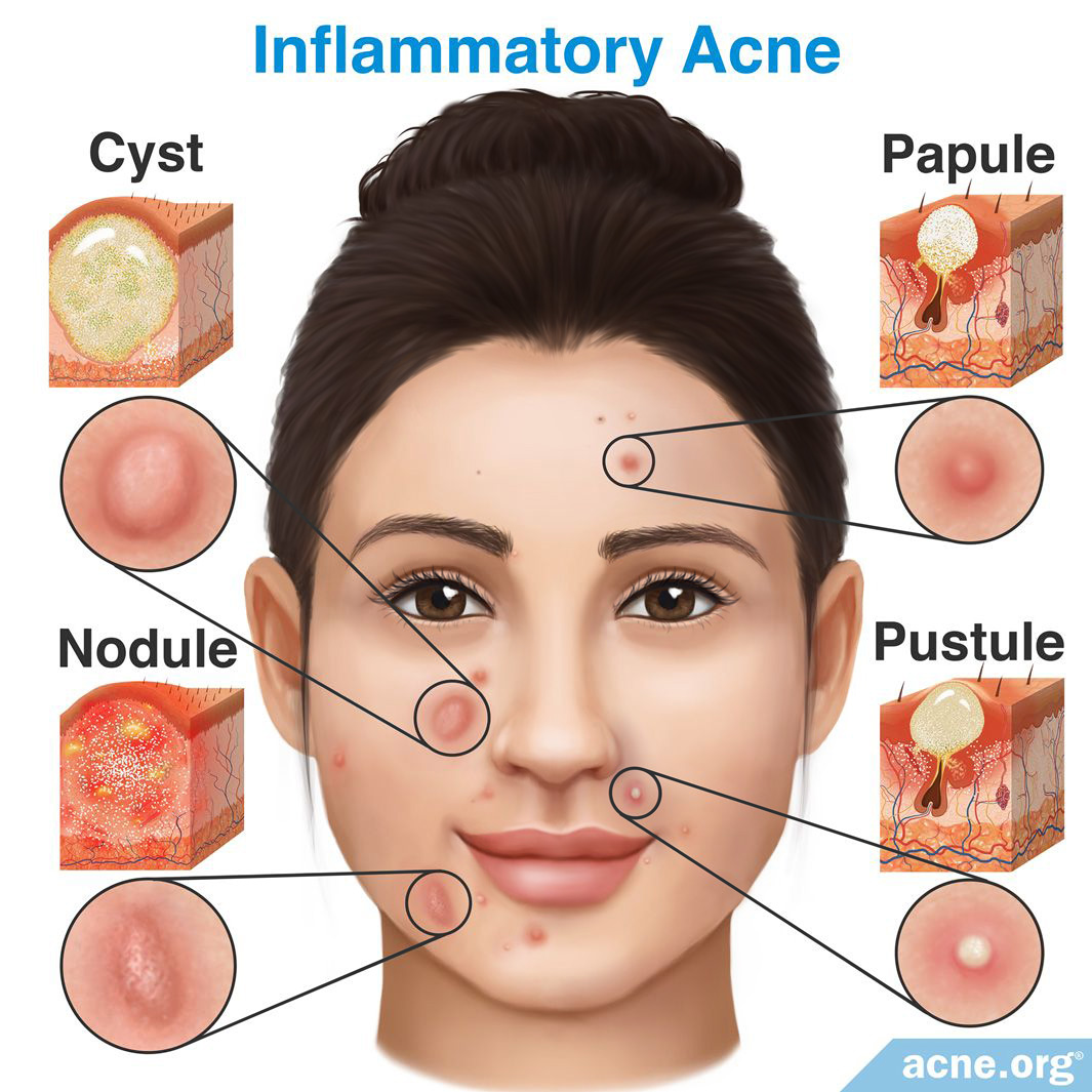 Inflammation plays a major and central role in acne development and is present from the very start of a clogged pore all the way until an acne lesion is completely healed. While all acne is inflammatory in nature, it is helpful to use the terms “non-inflammatory” to refer to acne that is not red and sore and “inflammatory” to refer to acne that is red and sore.