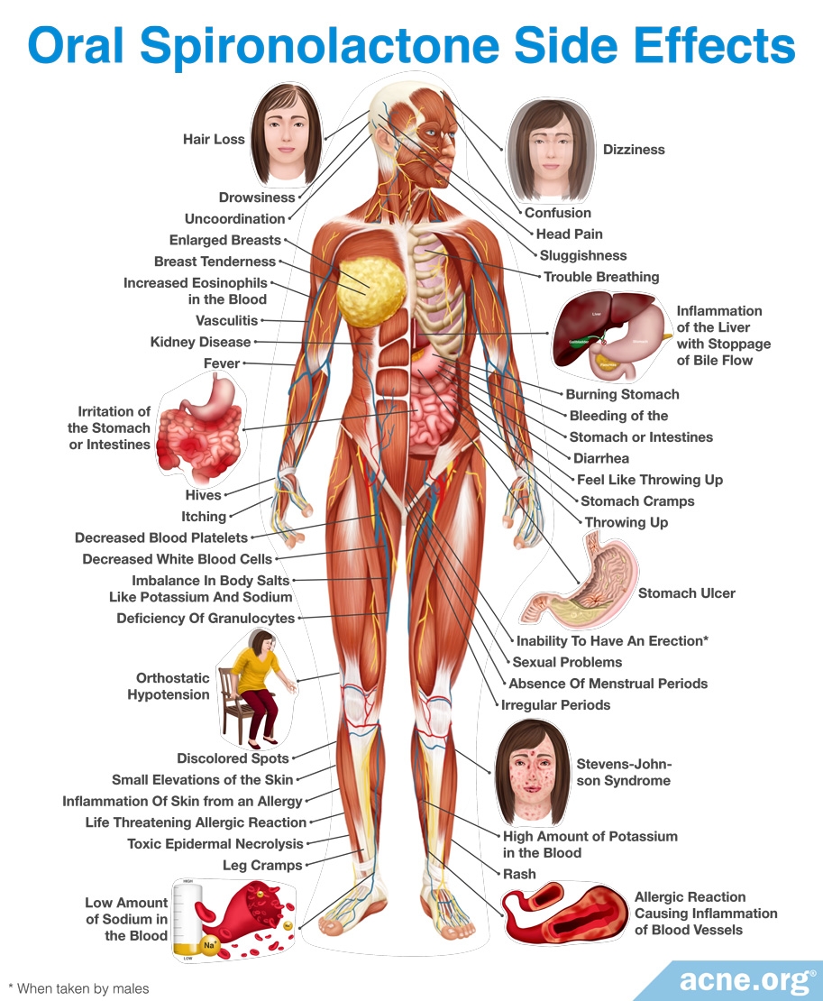 Men: Spironolactone is usually reserved for use in females because gynecomastia (male breast growth) can occur in males who take the drug.