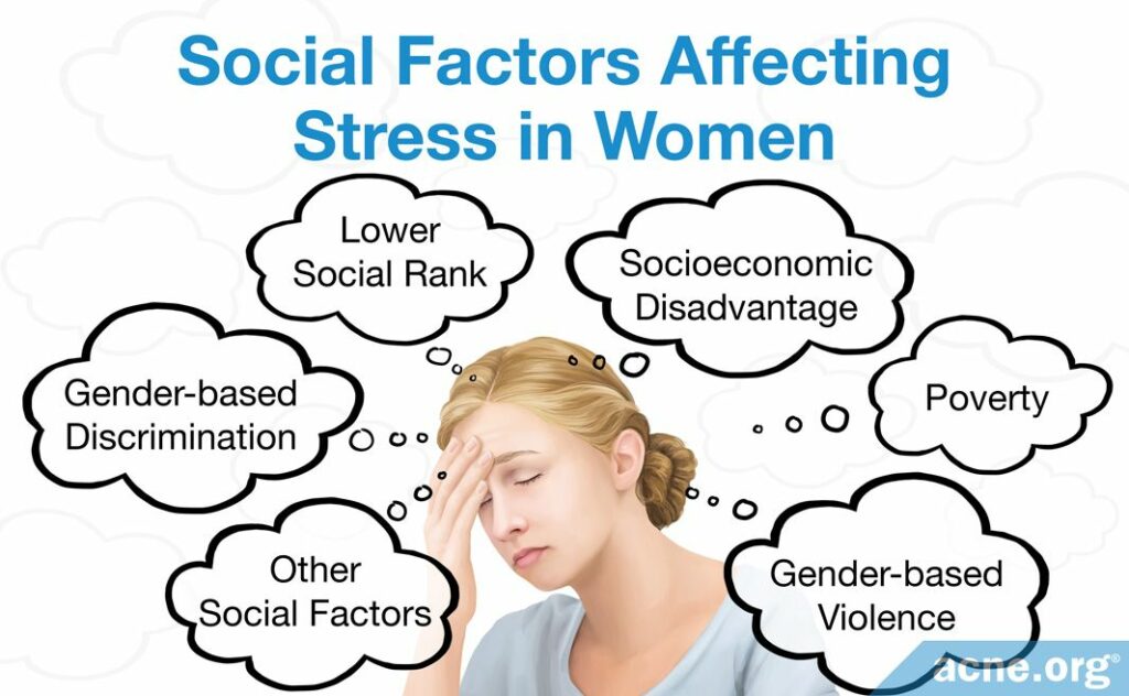 These societal pressures cause stress in all women, but can be especially stressful for those in difficult situations, such as single parenting and care-taking of elderly parents. This stress may lead to several stress-induced disorders, and potentially more acne.1